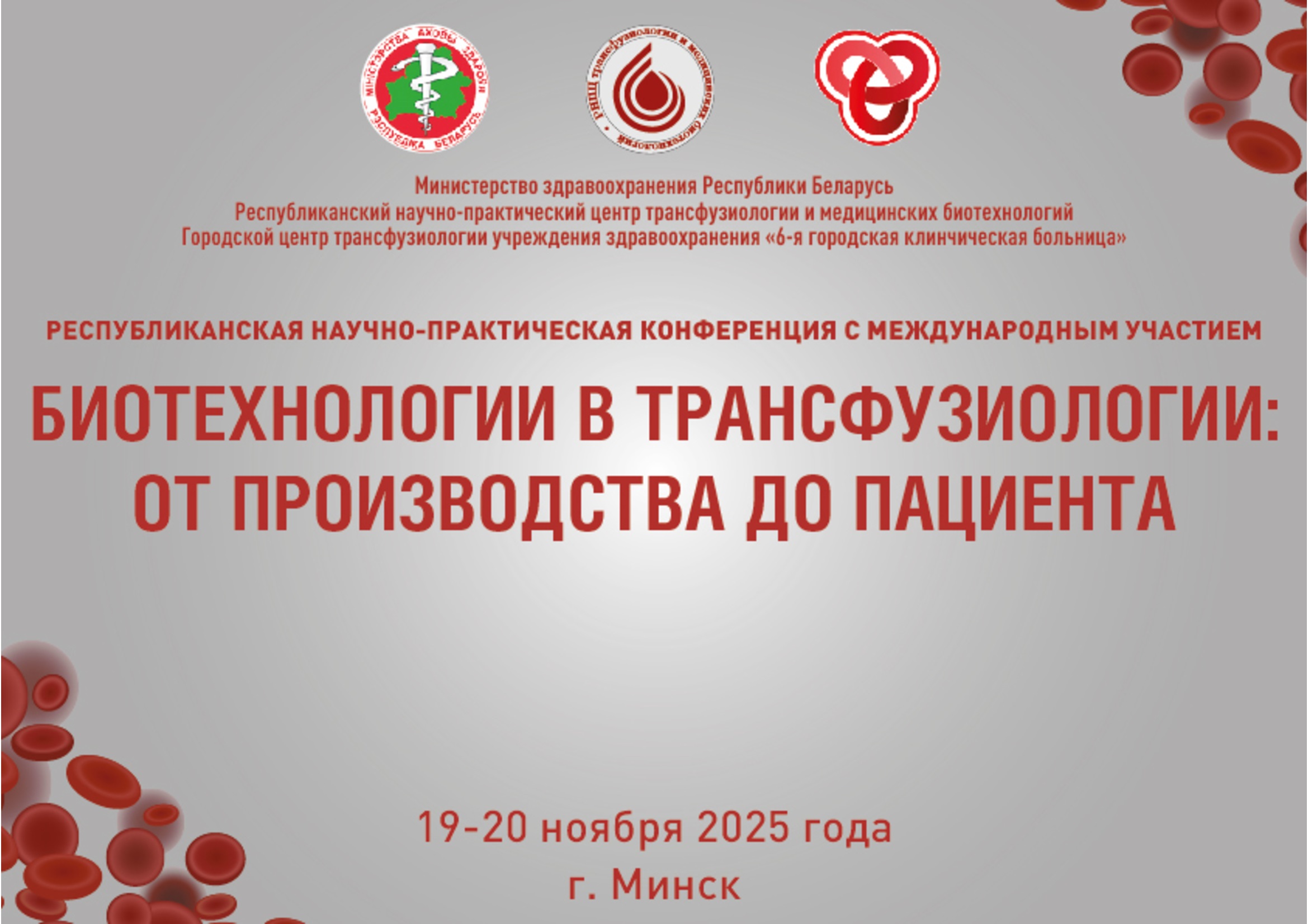 Приглашаем Вас 19 и 20 ноября 2025 года принять участие в республиканской научно-практической конференции с международным участием «Биотехнологии в трансфузиологии: от производства до пациента».